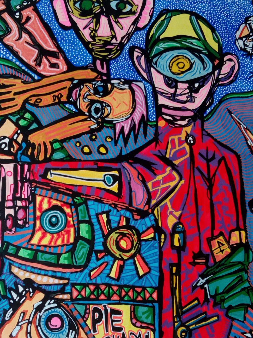 This artist, who attended the School of Fine Arts in Lyon and who is also a graphic designer, defines his art as belonging to free figuration, an artistic movement that appeared in the 1980s. "My work is inspired by comics, free figuration and street art. As in comics, I always surround the colors with black,” he explains.